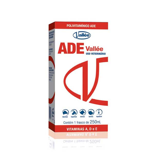 ADE Polivitamínico Vallée é um suplemento vitamínico injetável indicado para bovinos, suínos, ovinos e caprinos. Atua na prevenção e tratamento das deficiências de vitaminas A, D e E, fundamentais para o bom desempenho reprodutivo, crescimento e fortalecimento imunológico dos animais.